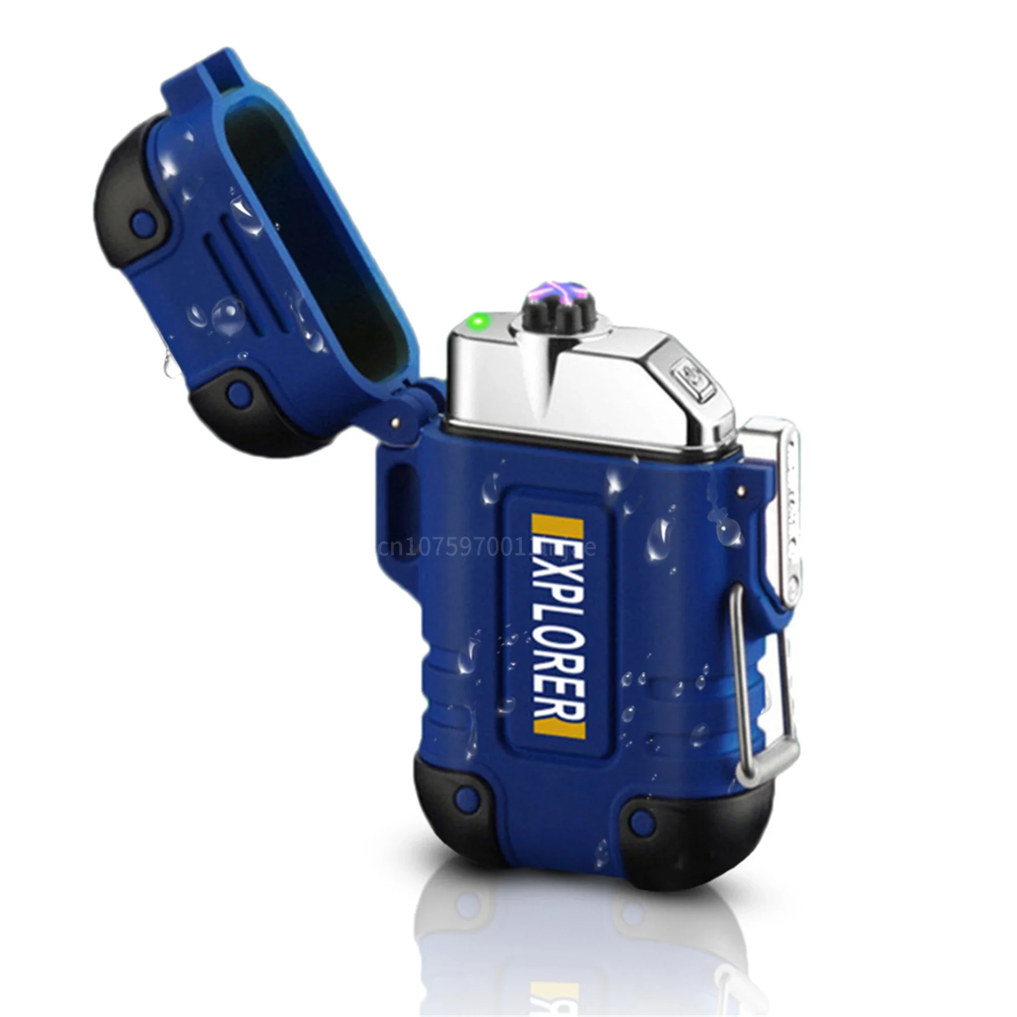 Briquet plasma sans flamme double arc étanche, rechargeable par USB, avec coupe-vent, pour l'extérieur.