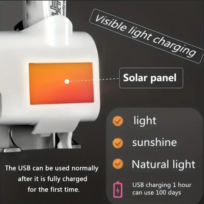 Fini les lavabos encombrés ! Ce support offre un espace propre et structuré pour vos essentiels du quotidien. sans branchement , il est rechargeable par energir solaire ou USB (durée de la charge:100 jours)